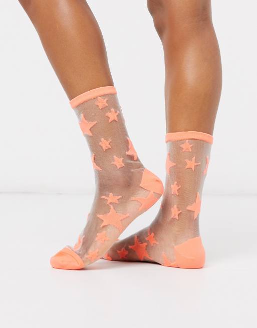 Gipsy Chaussettes Motif Etoile En Tulle Transparent Melon Evesham Nj