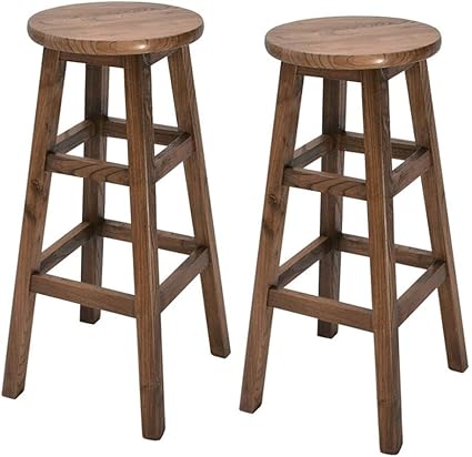 Tabourets De Bar En Bois Massif De 73 Cm Chaise De Salle A Manger Avec Tabouret De Cuisine A Pattes Carrees Pour Home Bar Office Club Lot De 2