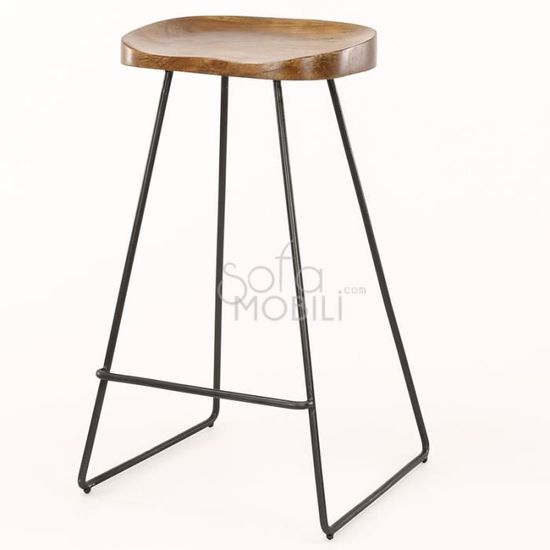 Tabouret De Bar Bois De Manguier Massif Et Acier Dossier