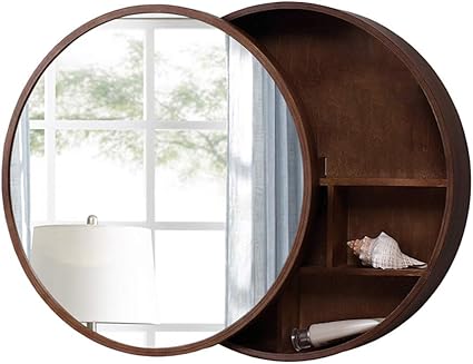 Armoires Avec Miroir Armoire De Toilette Miroir Salle De Bain Ronde Armoire De Toilette En Bois Support Mural Chambre Coiffeuse Miroir Mural Avec Meuble De Rangement Beau Et Durable Amazon Fr Cuisine