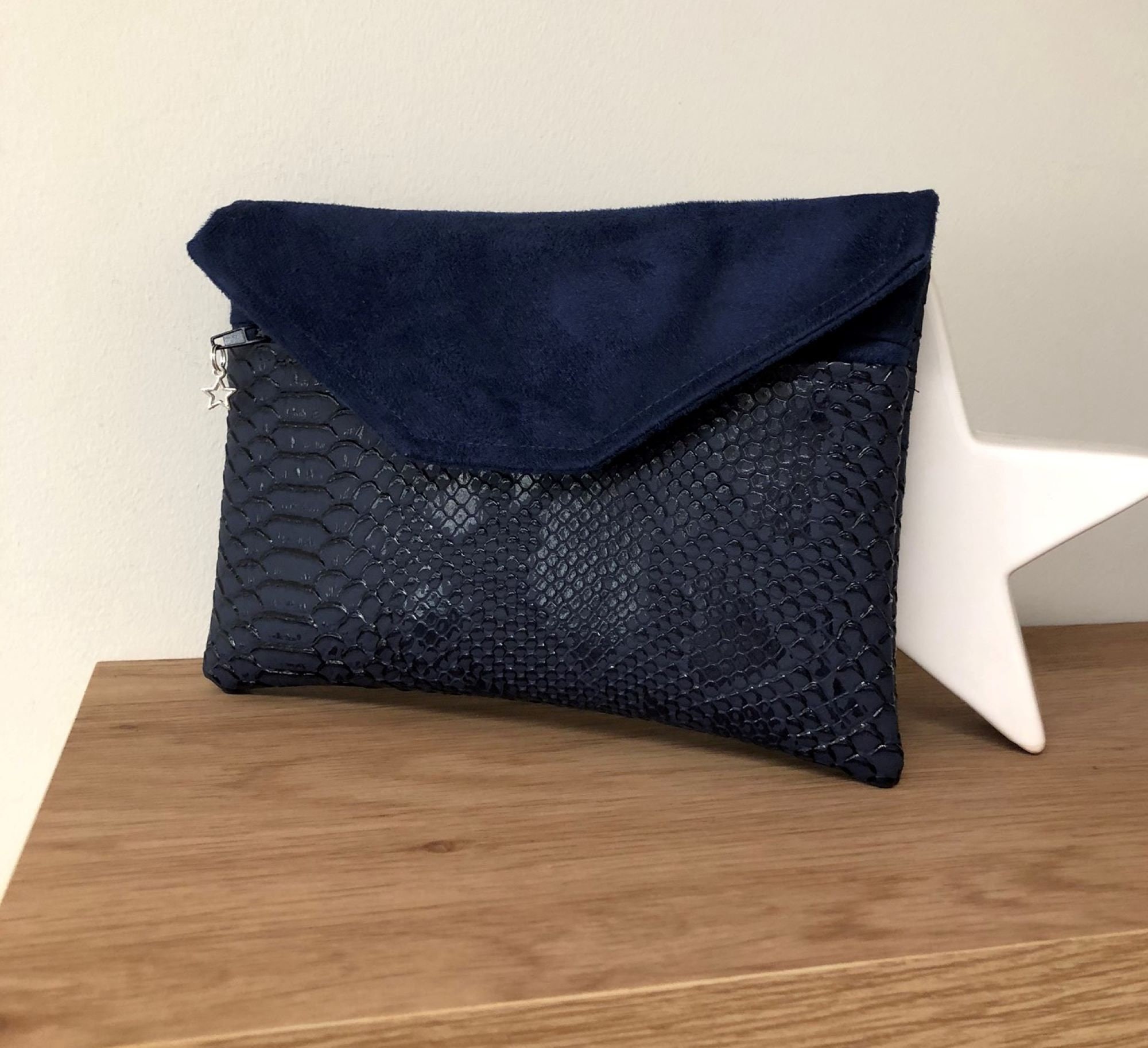 Portefeuille Compagnon Femme Bleu Marine Crocodile Tout En Un A Rabat En Suedine Et Simili Cuir Porte Monnaie Zippe Personnalisable