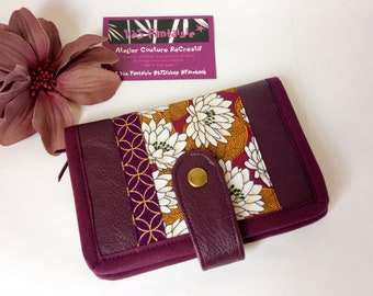 Portefeuille Femme En Simili Cuir Bleu Marine Et Coton Japonais Elooocreations