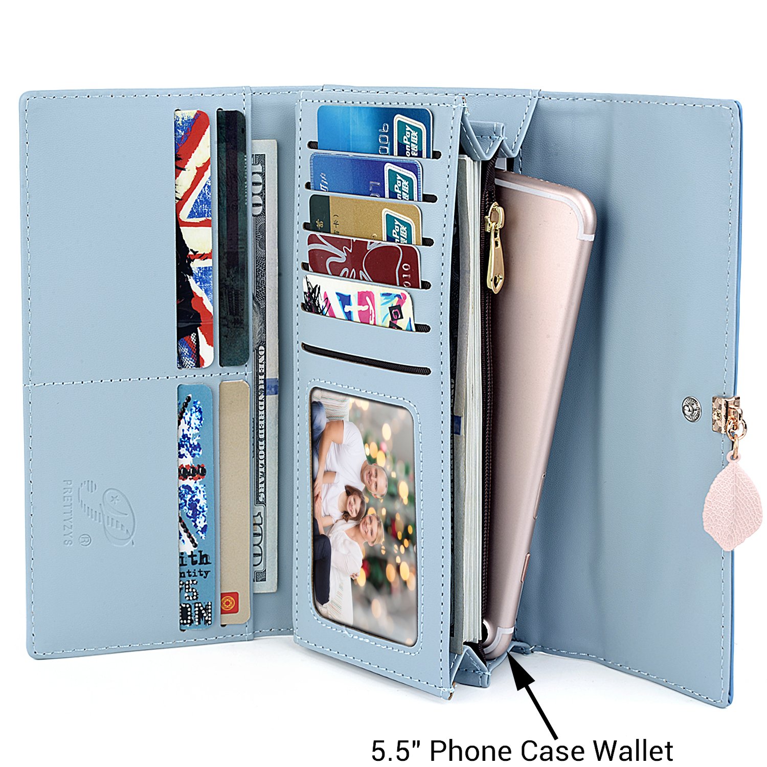 Coopay Papillon Clutch Portefeuille Femme Cuir Faux Universel Pochette Coque Pour Telephone Portables Avec Porte Cartes De Credit Poche A Monnaie Cles Porte Monnaie Sac A Main Pour Fille Bleu Clair Portefeuilles Et Porte Cartes
