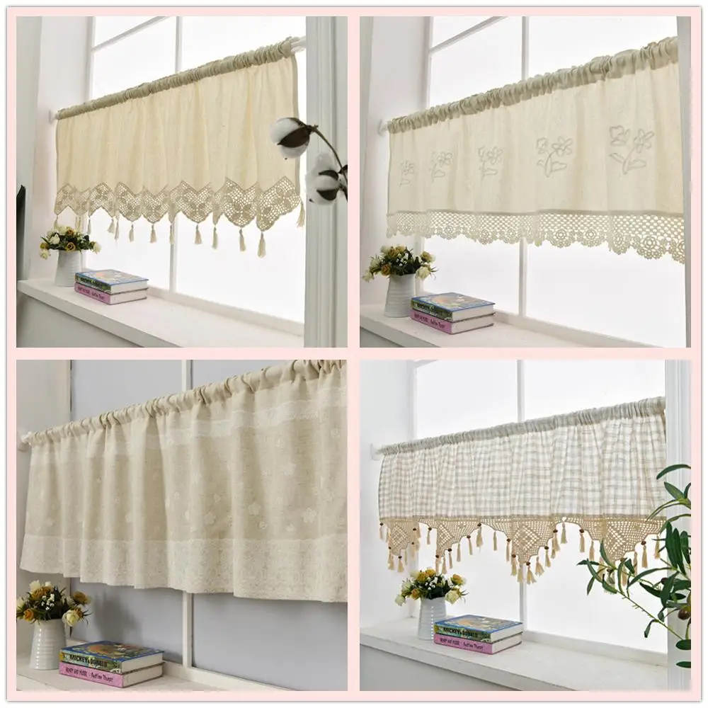 Zhh Cuisine Rideau A La Main Brode Fleur Cafe Rideau Lin Coton Dentelle Fenetre Cantonniere Rideaux Pour La Maison Decorative Aliexpress