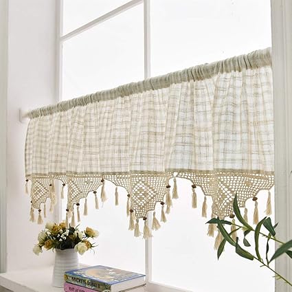 Rideau En Lin Coton Naturel Crochet Plaid De Cuisine Rideau Cantonniere Polyester Ecru 70 X 18 Amazon Fr Cuisine Maison