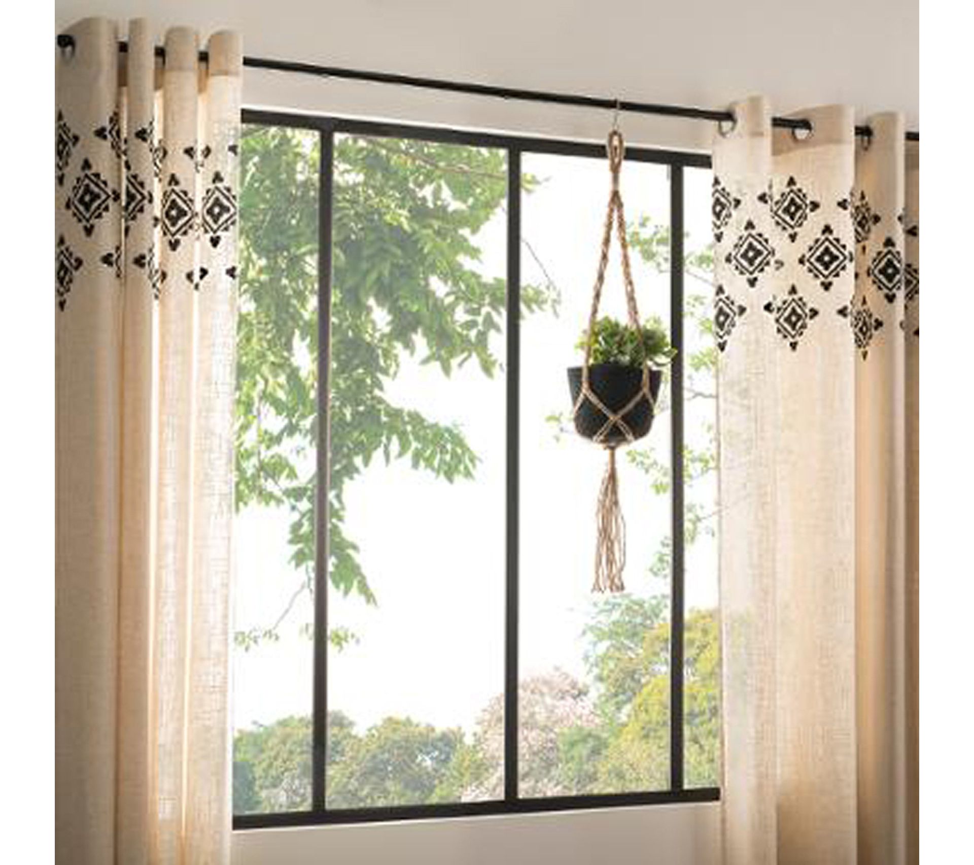 Rideau Charme Motif Fleurs Geometriques Couleur Lin Et Blanc 135x260cm A Oeillets 100 Coton Jane Lin Rideaux Pier Import
