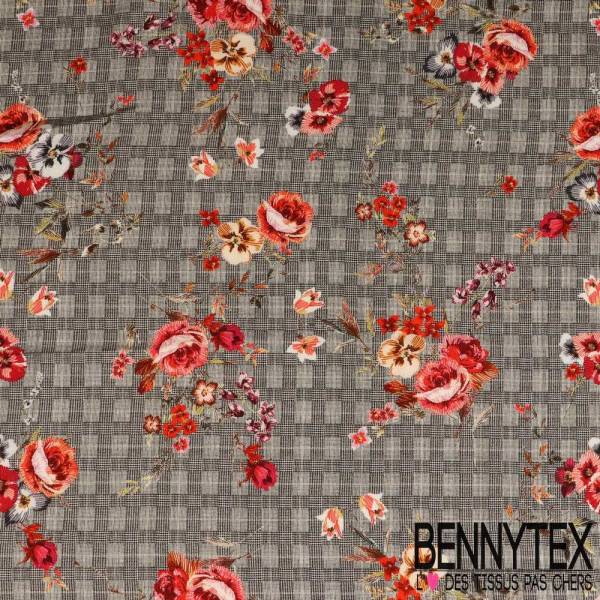 Fibranne Viscose Imprime Prince De Galle Et Fleurs Vieux Rose Bennytex Vente De Tissus Pas Cher Au Metre
