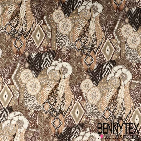 Fibranne Viscose Imprime Ethnique Camaieu De Kaki Fond Blanc Bennytex Vente De Tissus Pas Cher Au Metre