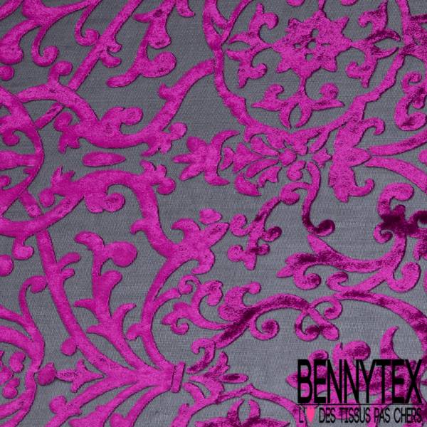 Mousseline De Soie Noir Devore Viscose Motif Baroque Velours Fushia Bennytex Vente De Tissus Pas Cher Au Metre