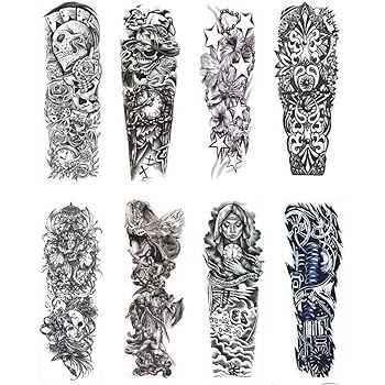 Amazon Com Temporary Tattoos 8 Sheets Black Full Arm Tattoo Body Stickers For Men Women Adults Kids Beauty