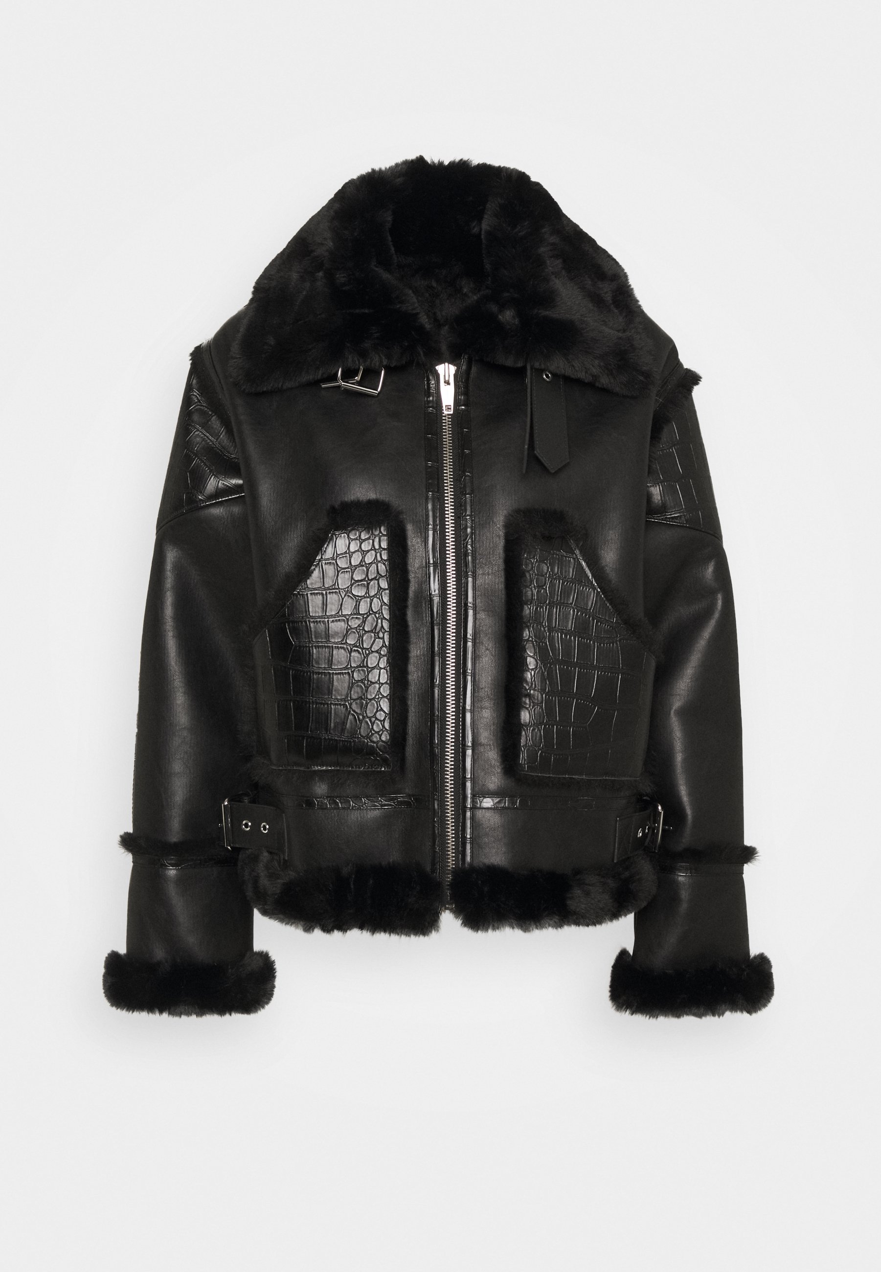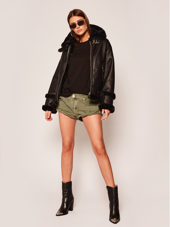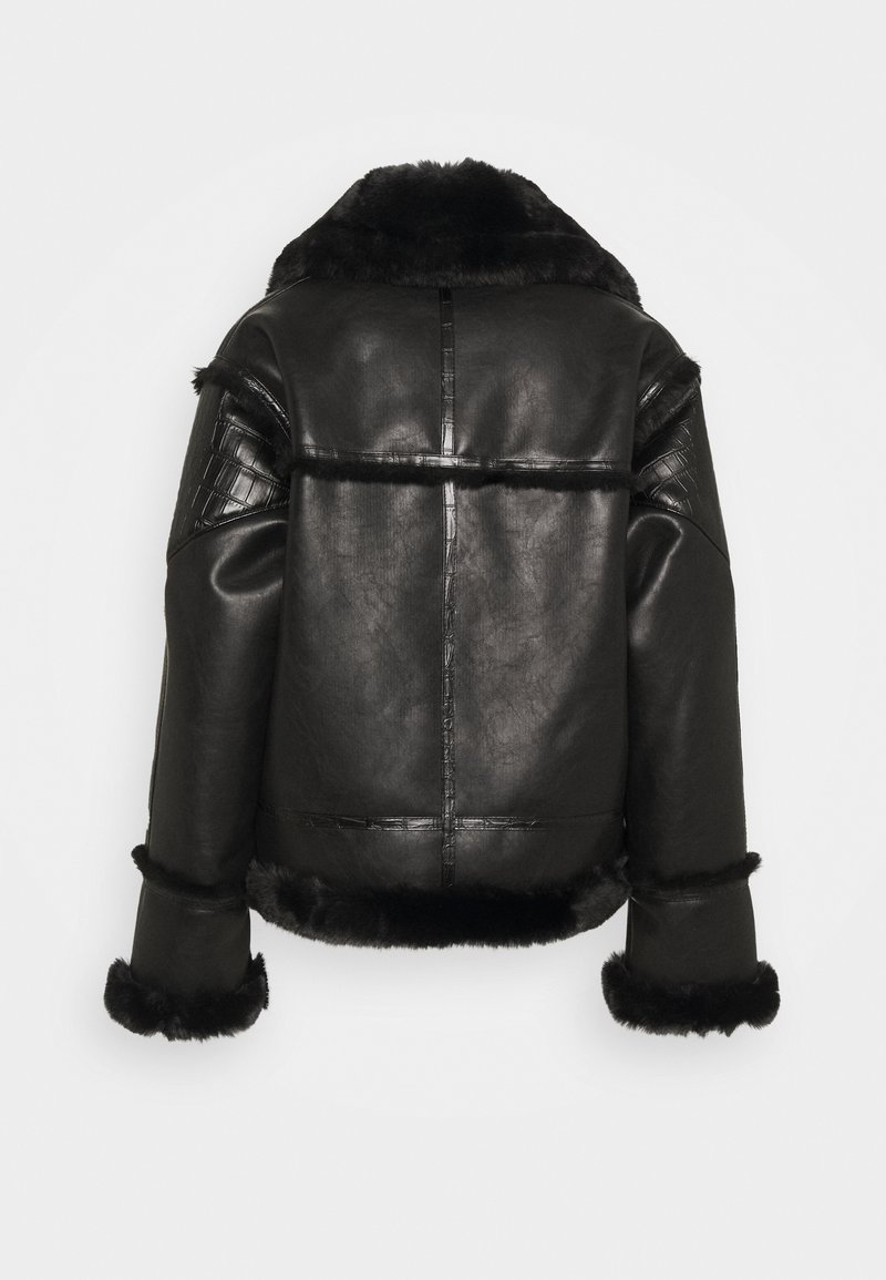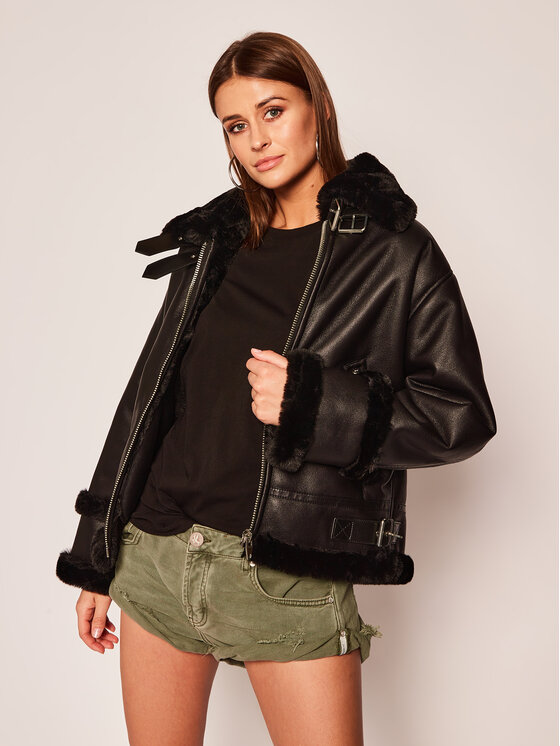 The Kooples Veste En Cuir Bounded Fake Fur Ffous Noir Regular Fit Modivo Fr