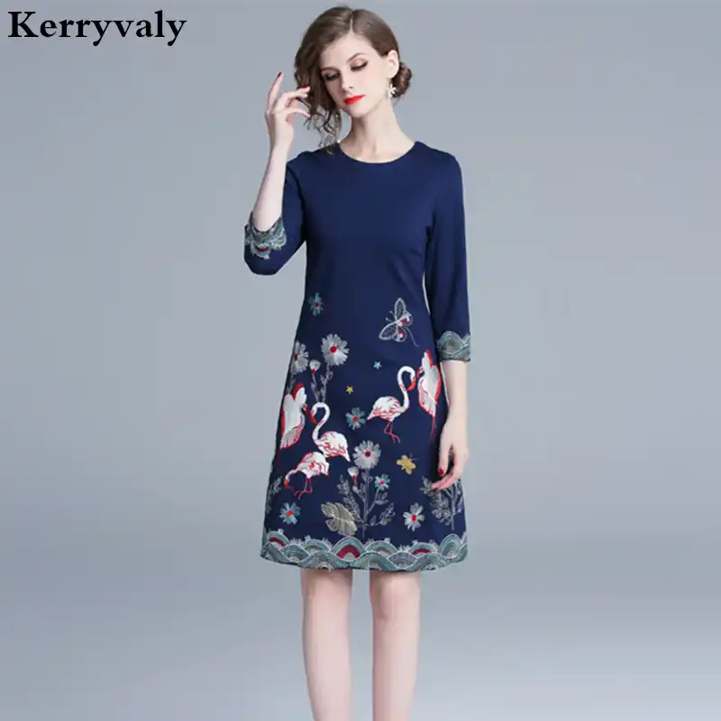 New Retro Blue Embroidered Dress Robe Femme Hiver Spring Midi Party Glitter Gothic Dress Dames Jurken K6221 Dresses Aliexpress
