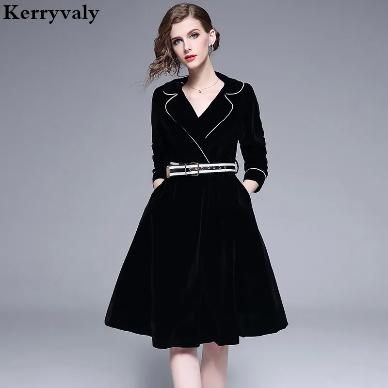 Winter Midi Black Office Velvet Dress Robe Femme Hiver 21 Vestidos Mujer Formal Dress Women Elegant Ladies Dresses Belt K326 Dresses Aliexpress