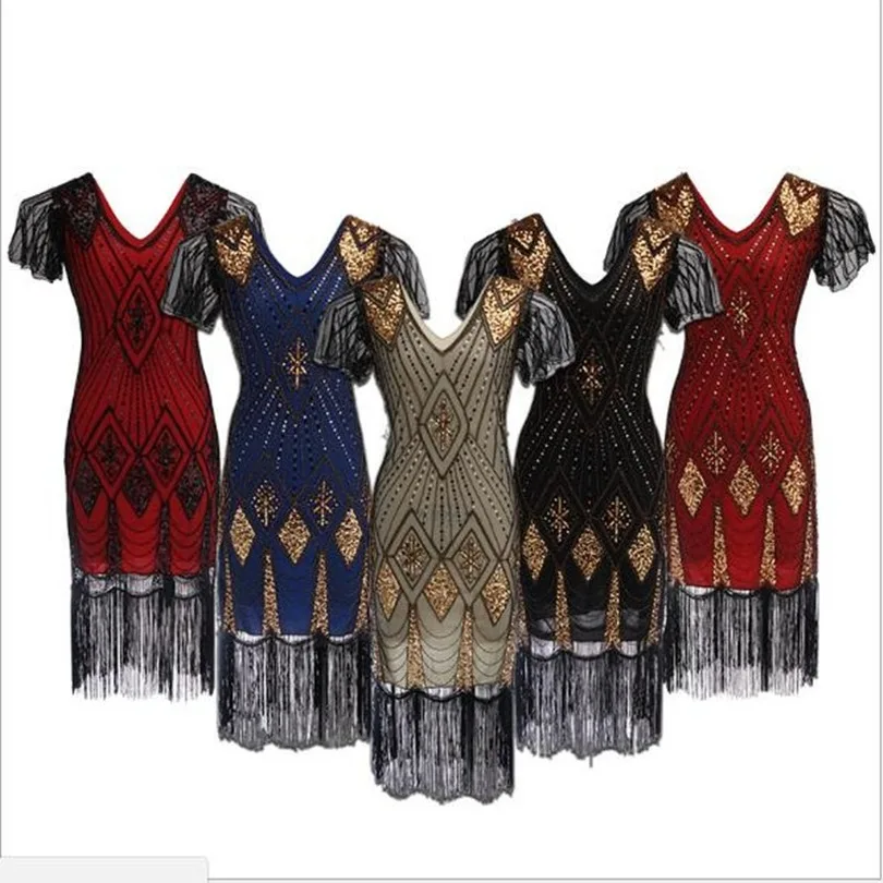 Women Party Dress Robe Femme 19s Great Gatsby Flapper Sequin Fringe Midi Dress Vestido Summer Art Deco Retro Black Dress Dresses Aliexpress