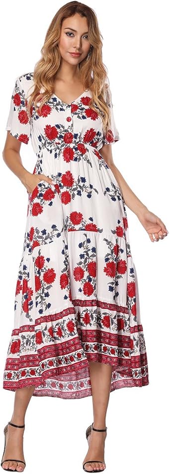 Feelingirl Robe Femme Elegant Midi Mi Longue Chic Automne Decontracte Imprime Floral Boho Plage Pour Femmes Robes Grande Taille S 4xl Amazon Fr Vetements Et Accessoires