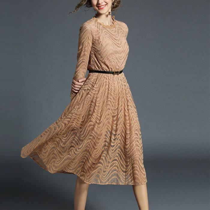 Wonder Beauty Robe Femme Chic Cocktail Midi Elegante Retro Vintage Dentelle Ceinture Soiree Abricot Achat Vente Robe Soldes Sur Cdiscount Des Le Janvier Cdiscount