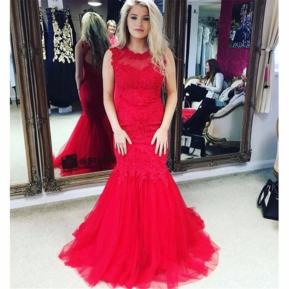 Robe Sirene Longue Invite De Mariage Rouge Longue Robe Dentelle Sirene Formelle Robe De Celebrite Sans Manches Dos Ouvert Robe Dentelle Rouge Aliexpress