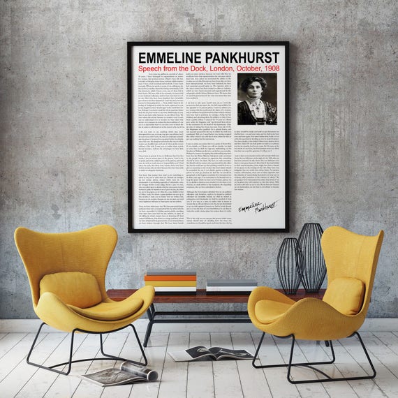 Feminist Poster Emmeline Pankhurst Speech From The Dock London 1908 Suffragette Poster Rights For Women Poster Inspiring Poster For Girl