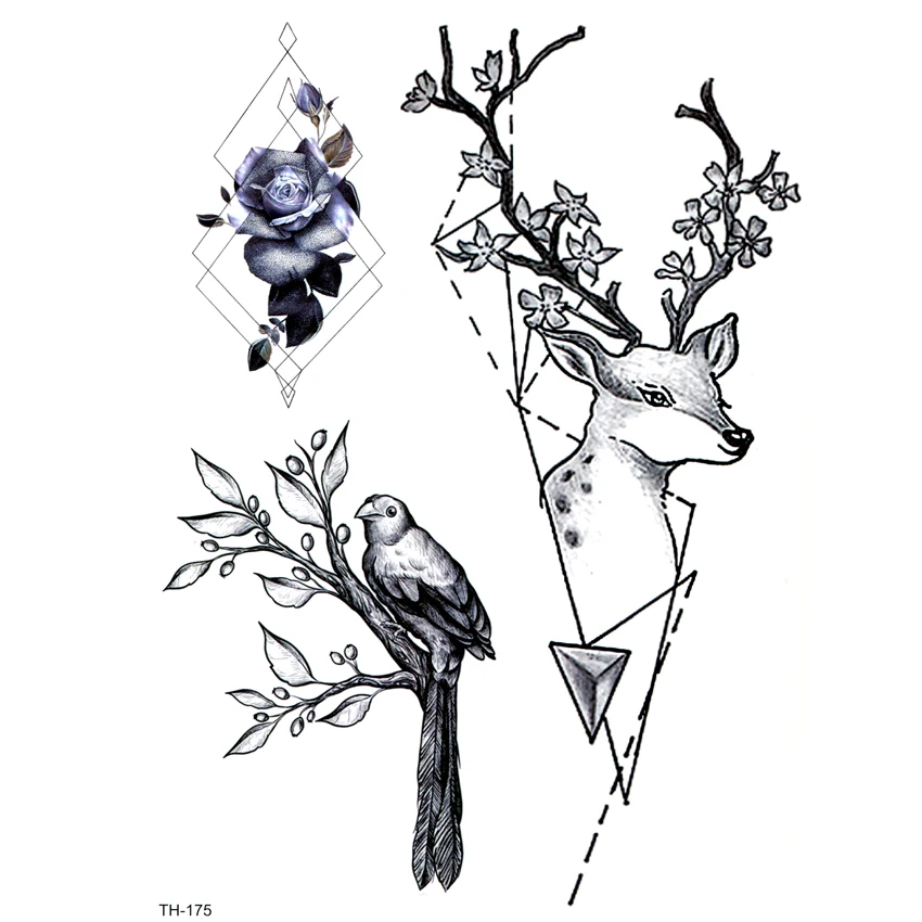 Oiseau Et Sika Cerf Impermeable Tatouages Temporaires Hommes Le Tatouage Flash Arbre Tatoo Tatouage Temporaire Femme Autocollants Aliexpress