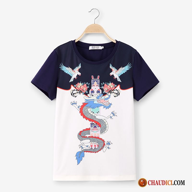 T Shirt Femme Manche Longue Femme Style Chinois Col Rond Decontractee Original Pas Cher