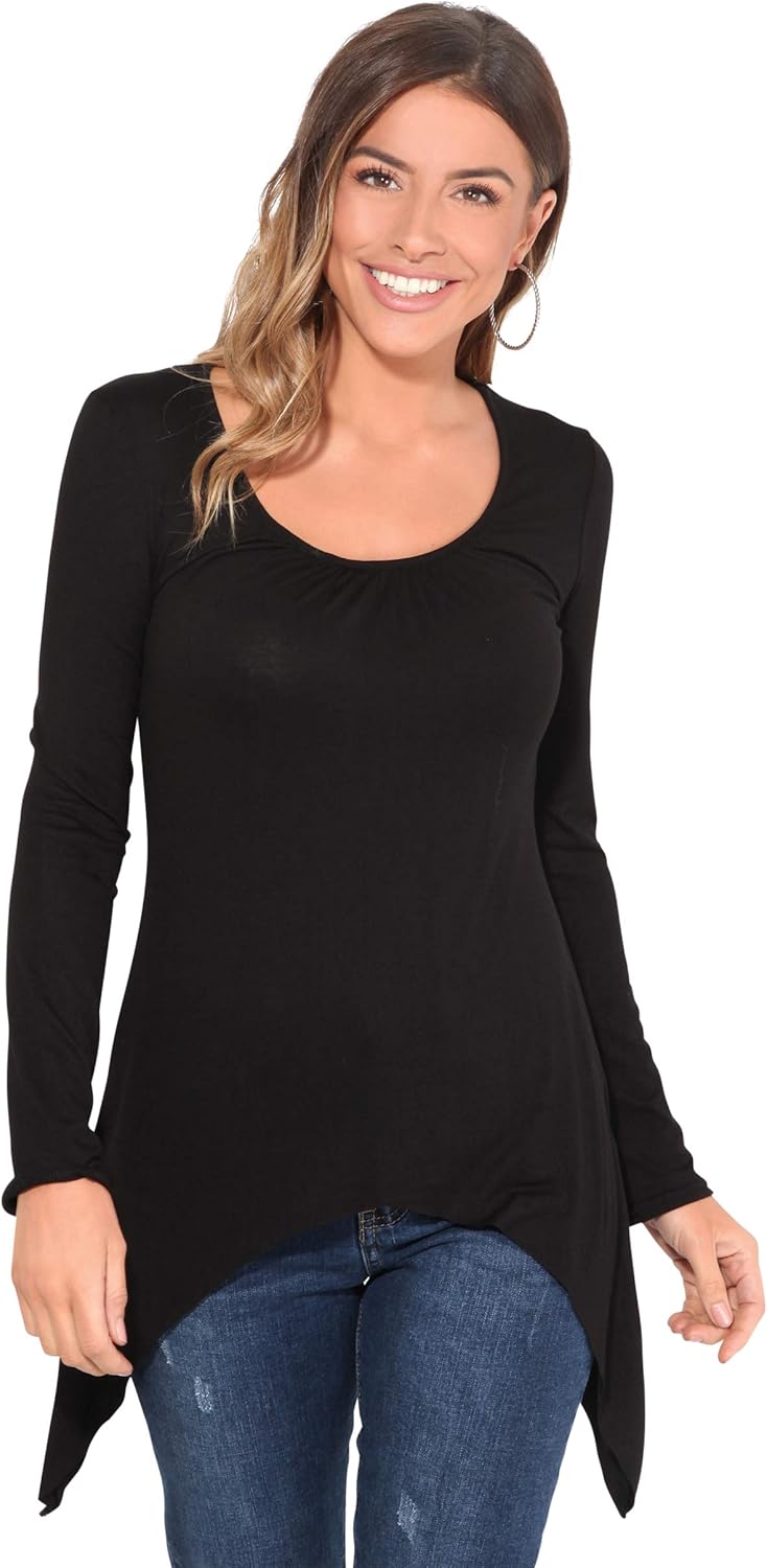 Krisp T Shirt Femmes Top Tunique Asymetrique Manche Longue Casual Original Pas Cher Col Rond T Shirts Tops Et Chemisiers T Shirts A Manches Longues