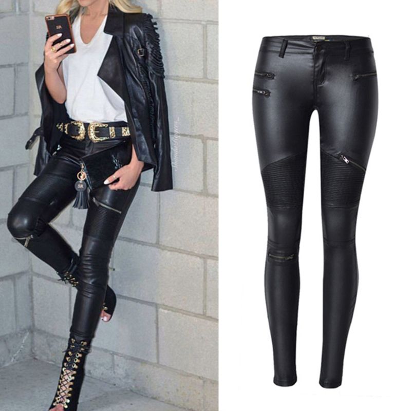 Pantalon Slim Simili Cuir Femme Bas Stretch Pu Pantalon Skinny Noir Pantalon Taille Haute Aliexpress