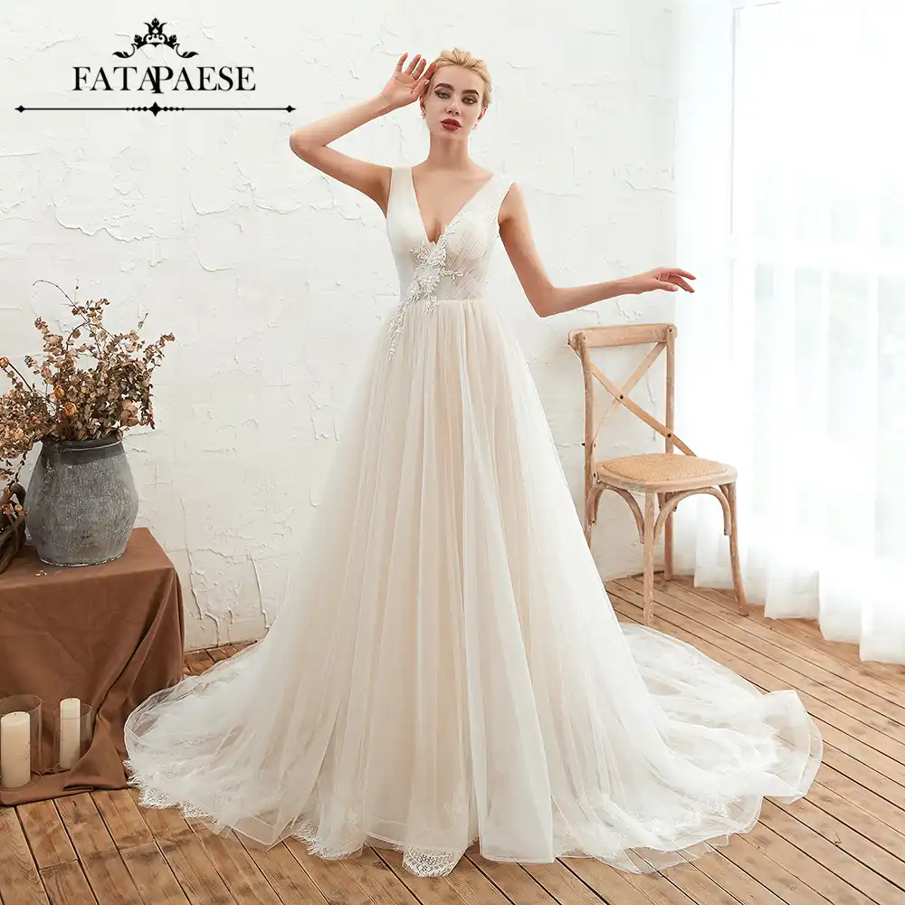 19 New Arrivals Robe De Mariee Boho Wedding Dresses Backless Deep V Neck Wedding Decoration Wedding Gowns Bride Dress Mariage Wedding Dresses Aliexpress