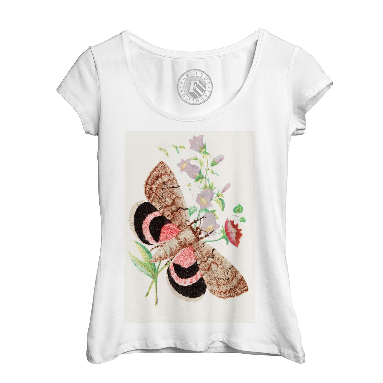 T Shirt Femme Dessin Papillon De Nuit Bruns Noir Et Rose Et Fleurs Champetre Nat Ebay
