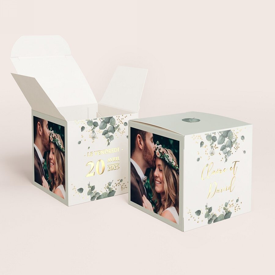 Boite A Dragees Mariage Fleurs Eucalyptus Photos Et Dorure Mariage Tadaaz