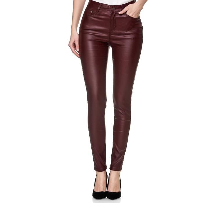 Pantalon Fin Taille Haute Effet Cuir Bordeaux T40 Rakuten