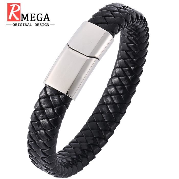 Rmega Bracelet Homme Bijoux Pour Homme Beau Bracelet Homme De Luxe Cuir Autehtique Antiallergie Ecologique Noir Noir Achat Vente Bracelet Gourmette Rmega Bracelet Homme Bijo Homme Adulte Cuir Noir Argente Soldes Sur