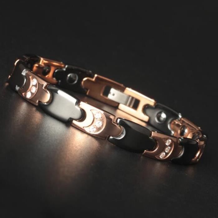 Bracelet Bijoux Homme Femme Bracelet Sante De Luxe En Ceramique Avec Or Rose Et Diamants Achat Vente Bracelet Gourmette Bracelet Bijoux Homme Femme Mixte Adulte Or Rose Noir Dore Rose