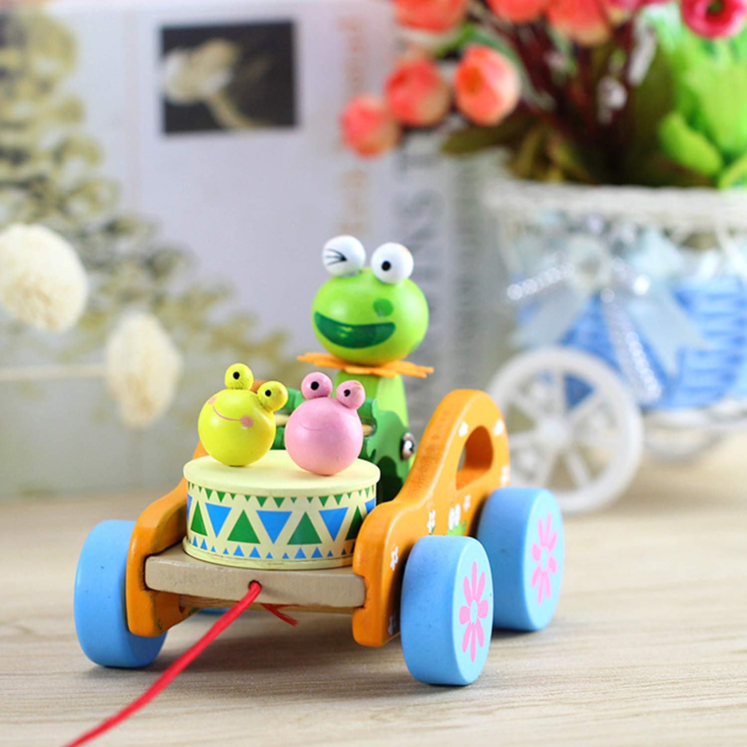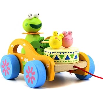 Ruixib Jouet A Tirer Voiture En Bois A Tirer Avec Le Tambour Qui Sonne En Tirant Jouet Educatif Forme Lapin Grenouille Cadeau Noel Anniversaire Pour Les Enfants Plus De 9 Mois Amazon Fr Jeux