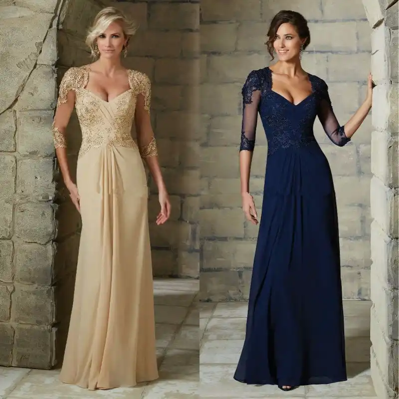 Long Chiffon Mother Of The Bride Dresses Lace Applique Wedding Party Gown Half Sleeve Custom Made Robe Mere De La Mariee Mother Of The Bride Dresses Aliexpress
