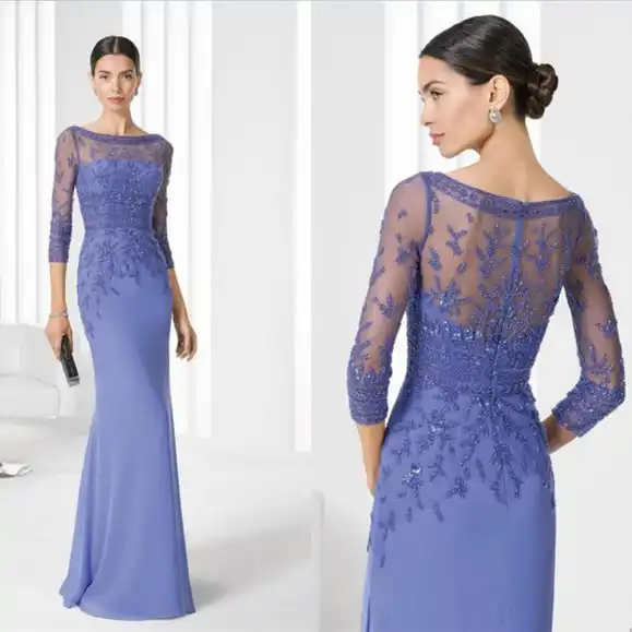 Elegant Mermaid Mother Of The Bride Dresses With Sleeves Robe Mere De La Mariee Illusion Back Formal Women Party Dress Mother Of The Bride Dresses Aliexpress
