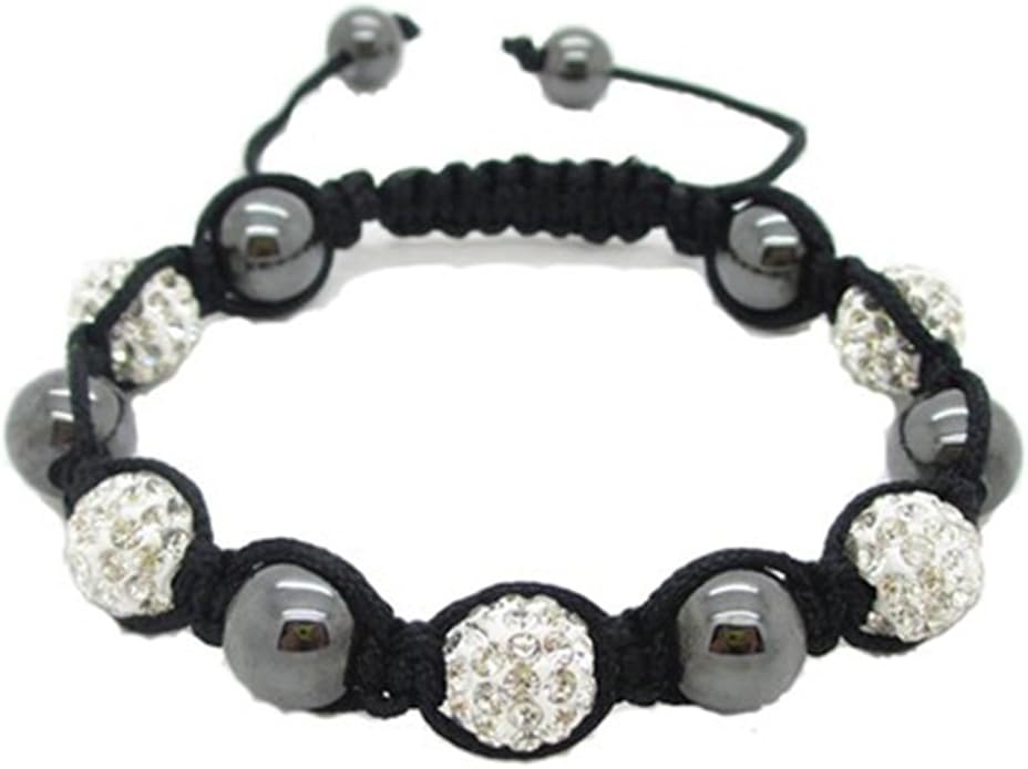 Shamballa Bracelet 11 Perles 5 Perles Cristal Strass 6 Perles Hematites Blanc Amazon Fr Bijoux