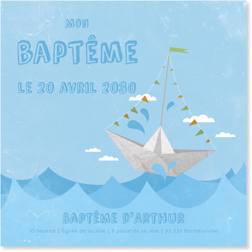 Petit Bateau En Papier Faire Part De Bapteme A Personnaliser Bonnyprints Fr