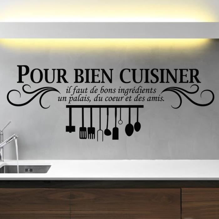 Cet autocollant déco sera parfait les murs de votre cuisine ou salle à manger !. Achat Sticker mural cuisine en ligne Bienvenue sur la page Sticker mural cuisine de Cdiscount !. Le stickers citation pour cuisine est composé du texte Bonne cuisine et bon vin, c'est le paradis sur terre de Henri IV Il met en appétit les fines bouches et rend hommage au Roi de France et de Navarre.