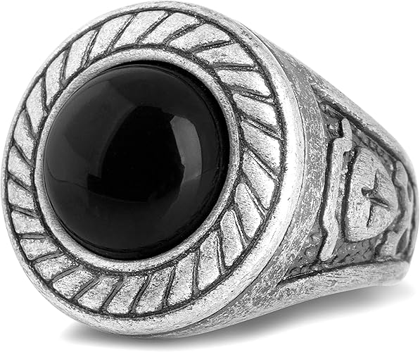 Vente Bague Homme Acier Chevaliere A Croix Et Onyx
