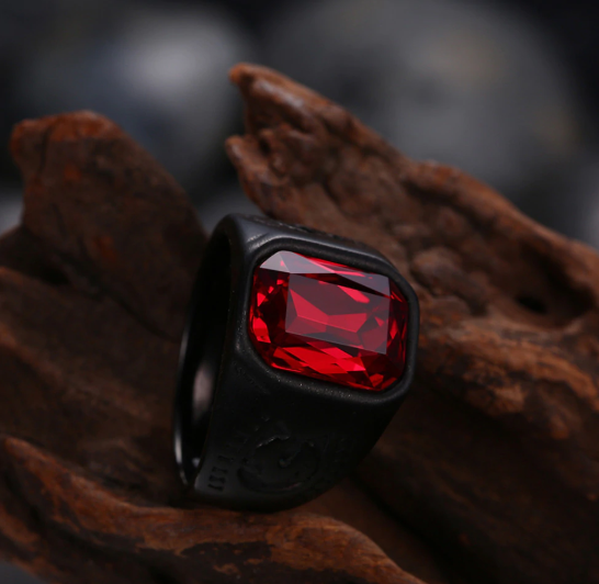Anillos Bague Chevaliere Noir Mat Pierre Rubis Rouge Gravure Fer A Cheval Mode Homme Top Oncecolombia Com