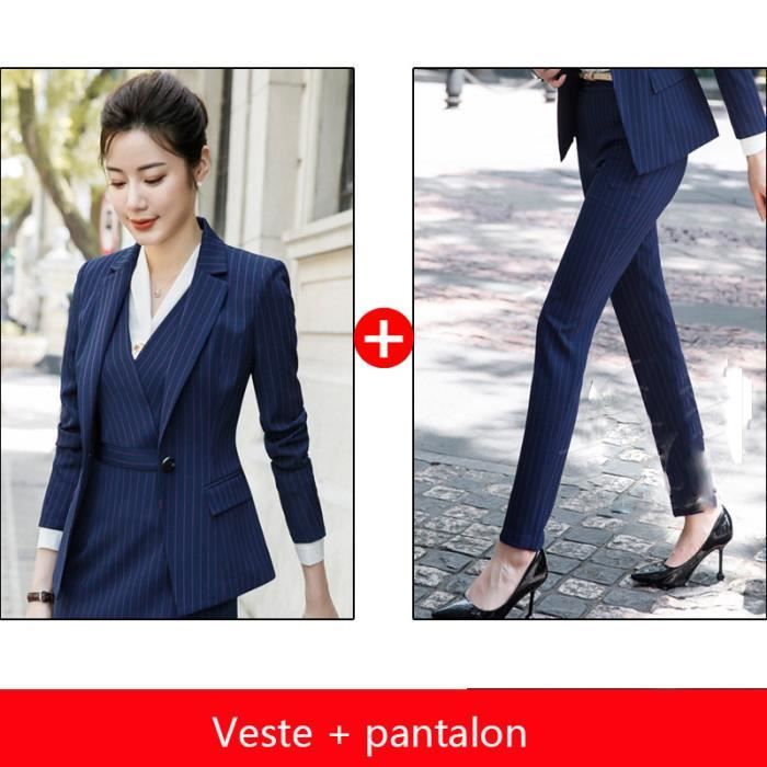 Veste Pantalon Costume Femme De Marque Costume De Mode A Rayures Coreens Costume De Travail Automne Et Hiver Ensemble De Bleu Achat Vente Costume Tailleur Soldes Des Le 15 Juillet Cdiscount