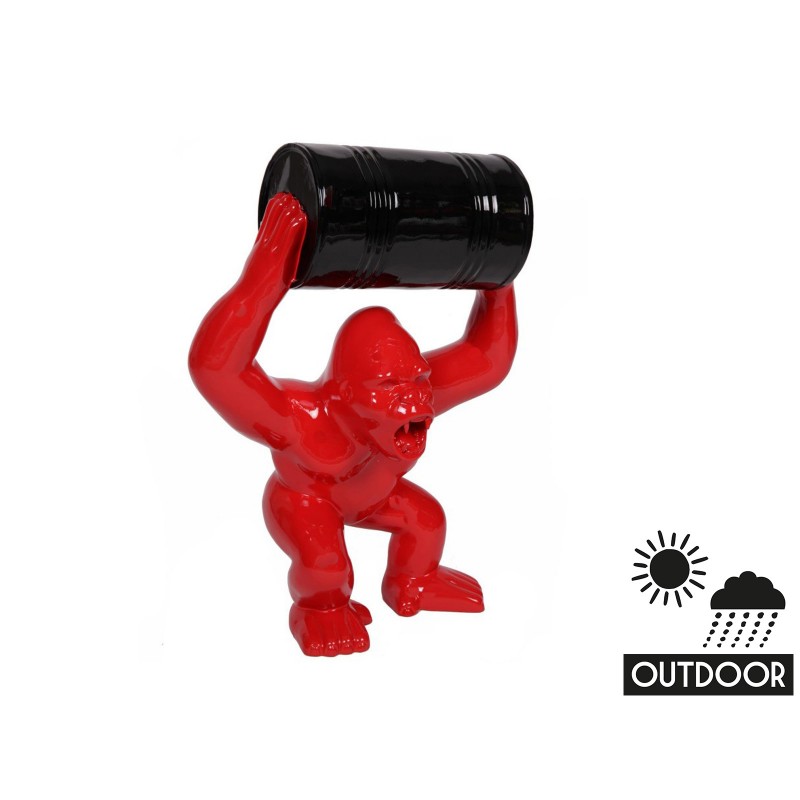 Statue Gorille Rouge Outdoor Exterieur Tonneau Noir Decoration Pour Jardin Cours Terasse Boisetdeco Nord Picardie Bois Deco