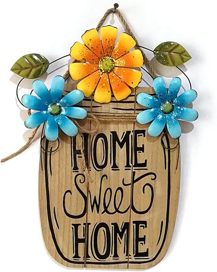 Vorcool Plaque Maison En Bois Pour Jardin Exterieur Porte Avec Fleurs En Metal Decoration Pour Maison Et Jardin Amazon Fr Cuisine Maison