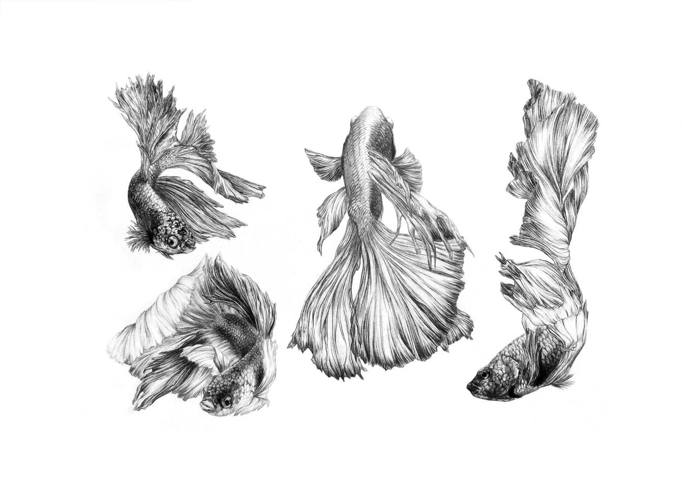 Water Dancing Drawing Pencil Charcoal Authentic Of A Siamese Betta Dessin Poisson Dessin Au Fusain Dessin