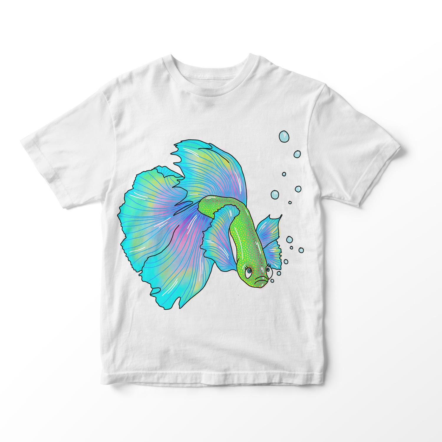 T Shirt Enfant Poisson Combattant Vert Et Bleu Deambule Et Fait Des Bulles Ebay