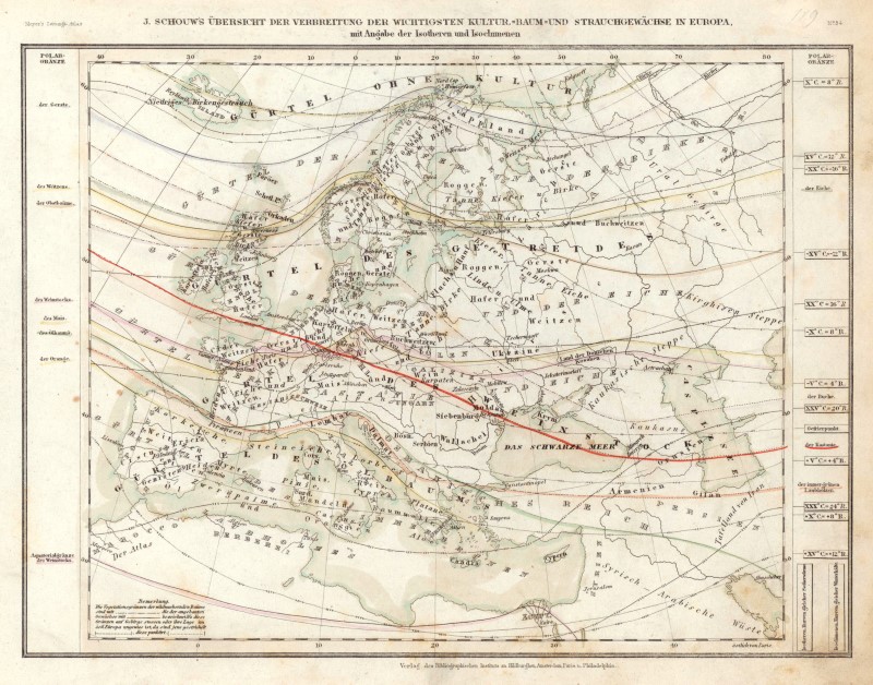 Botanische Geographie Europe Original Table En Acier Carte Bibl Inst 2 1850 Ebay