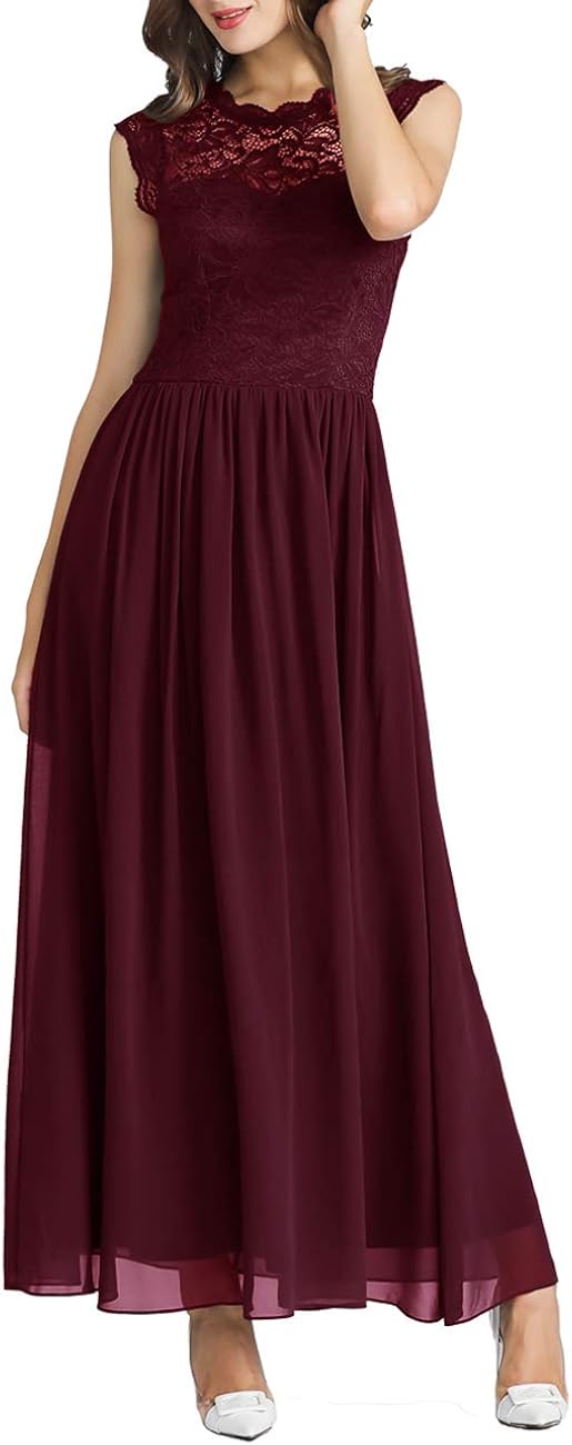 Muadress Robe Femme De Soiree Mariage Bapteme Longue En Dentelle Mousseline Manche A Volant A Line Femme Soiree