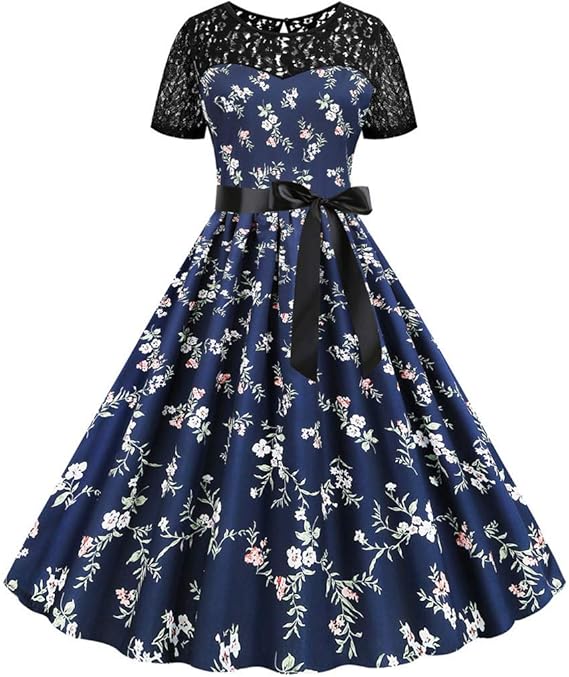 Muadress Vintage Robe Cocktail Femme Pour Soiree Bapteme Mariage En Dentelle Col Rond Mi Longue Rockabilly Amazon Fr Vetements Et Accessoires