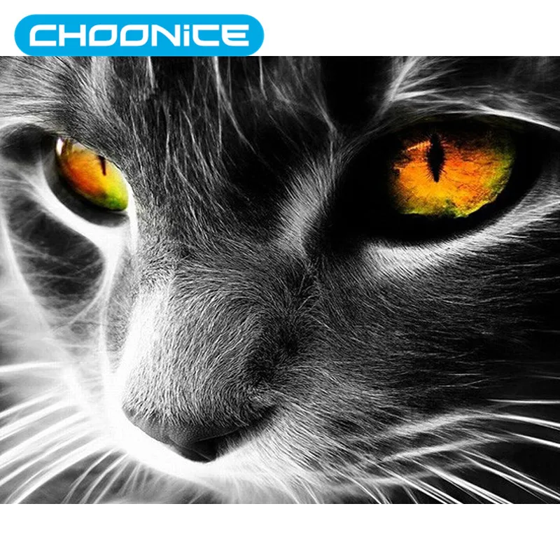 Diamant Peinture Chat Jaune Yeux Noir Chat Diy 3d Diamant Broderie Fonce Petit Animal Mosaique Dessins Coloration Par Des Numeros Aliexpress