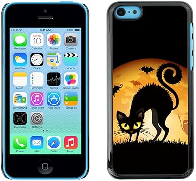 Qcase Apple Iphone 5c Chat Noir Halloween Yeux Jaunes Dessin D Art De Sorciere Mince Noir Plastique Couverture Shell Armure Coque Coq Cas Etui Housse Case Cover Amazon Fr High Tech